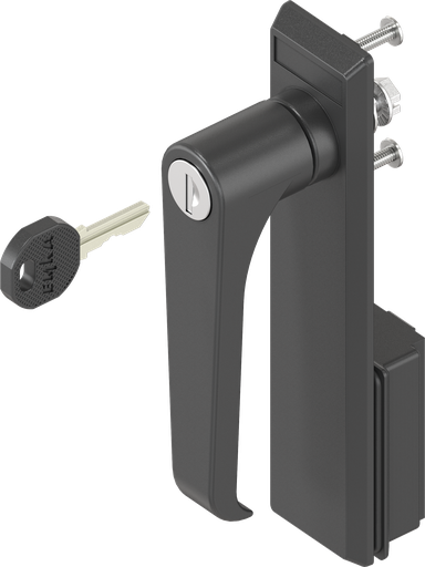 Escutcheon long with L-handle, keyed different, Polyamide black and zinc die black powder-coated; 1223-U15